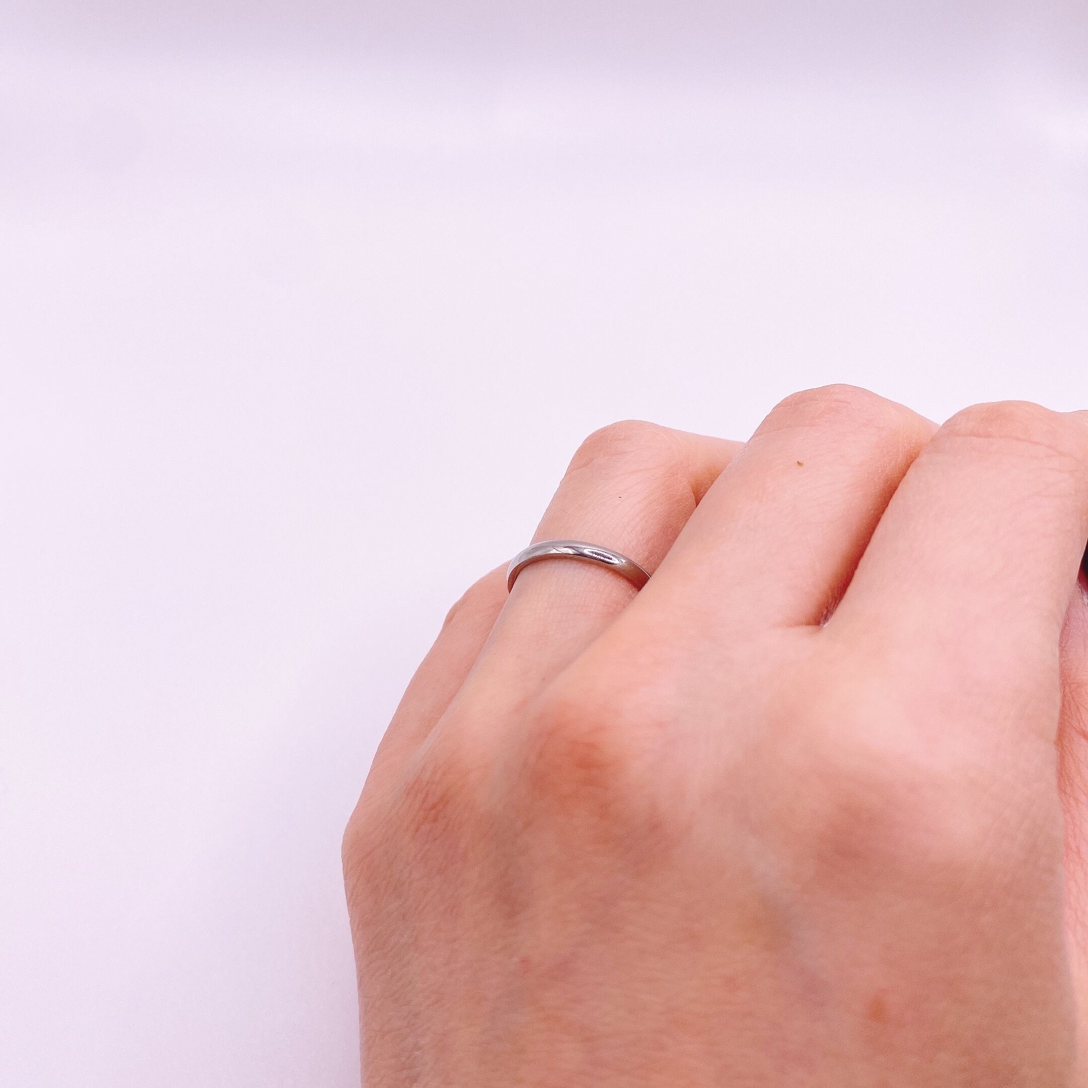 つるんと上品に輝き、様々なジュエリーとも相性良く合わせやすいので、一つは持っていたいシンプルなリングです。